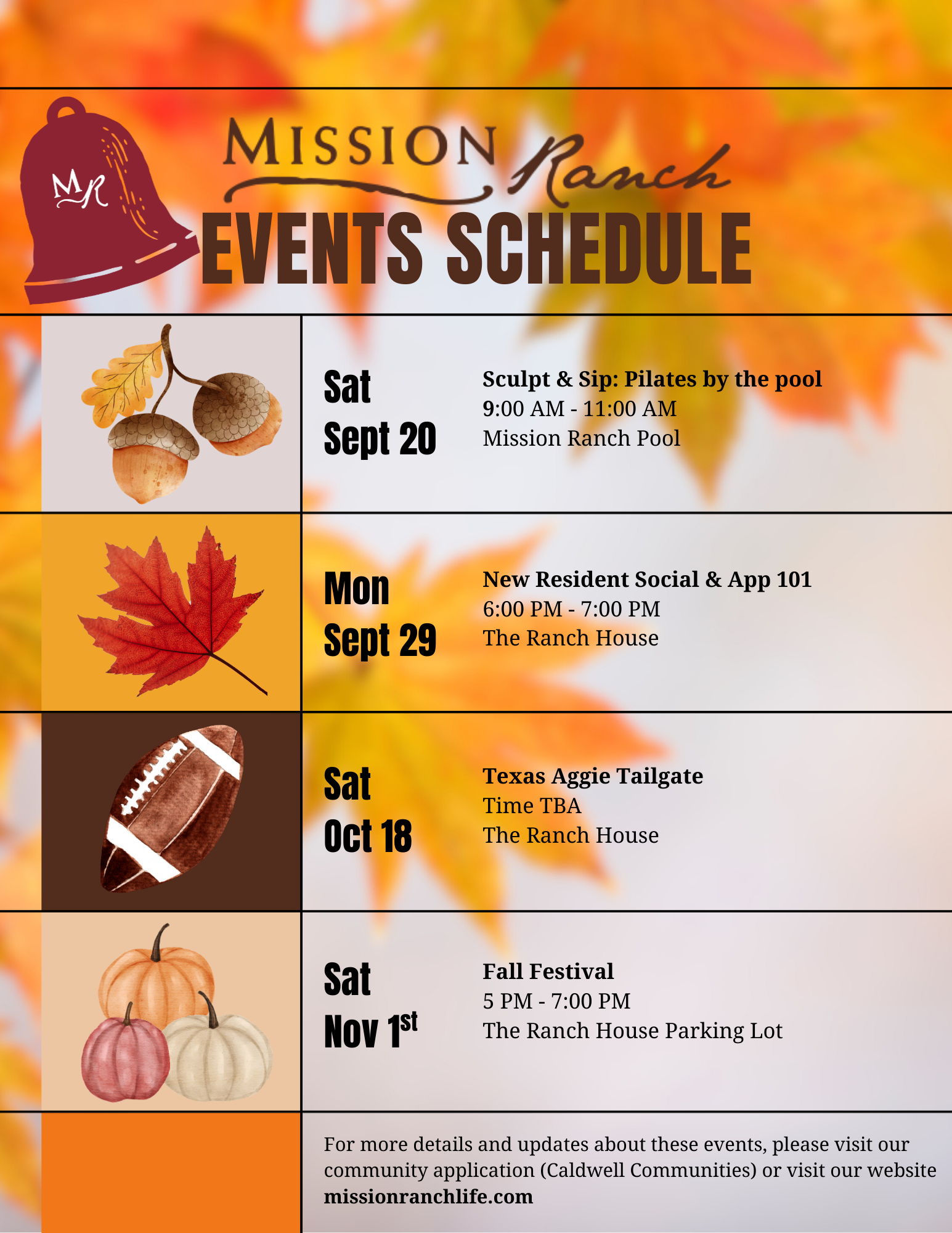 Our community lifestyle director ensures every month, season, and year is more thrilling than the last. She not only organizes groups, classes, and events but also helps you find the perfect fit for your interests. Revel in dive in movies or live family game nights at The Ranch House. Share recipes at a playdate at the park or join Zumba and water aerobic sessions. Enjoy blook club or coffee catch-ups. With a myriad of opportunities to mix, mingle, and connect, our community lifestyle events guarantee that every day community rings true at Mission Ranch.